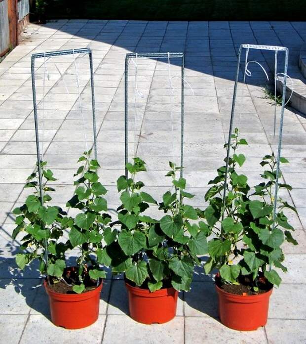Для возделывания огурцов подойдут обычные балконные контейнеры для выращивания цветов. В обязательном порядке в днище контейнеров делают отверстия для дренажа. А сами емкости ставят в поддоны, чтобы вода не текла в стороны.