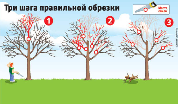3. Следующий этап - обрезка боковых скелетных ветвей (шаг 3). Их длина не должна превышать 2,5 м. Укорачивать их нужно на внешние побеги, которые смотрят из кроны наружу.