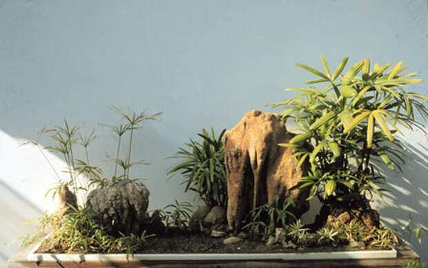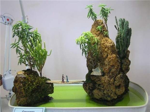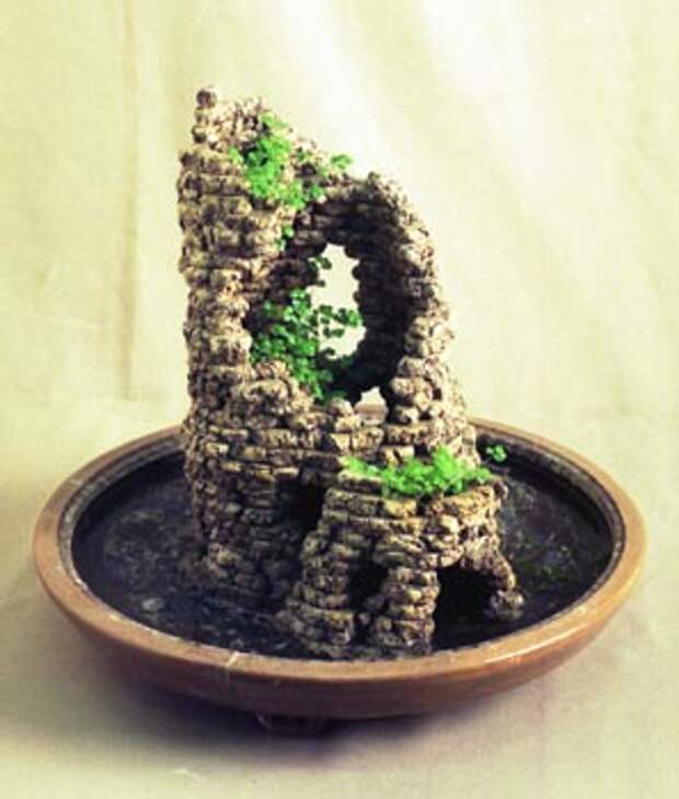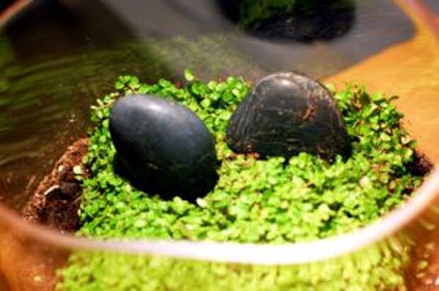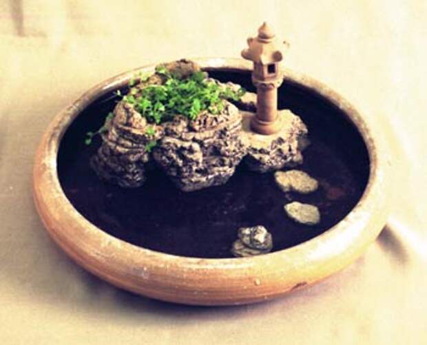 С его помощью вы также сможете контролировать умеренный полив мха. Поверх гравия насыпьте почву, не утрамбовывайте ее. Далее «побросайте» мох. Аккуратно его примните. Посадки следует опрыскивать чистой водой из пульверизатора до тех пор, пока почва подо мхом не станет влажной. Будьте внимательны, не залейте растения. Если хотите, то можете украсить композицию камнями или крупным гравием. Отлично будут смотреться миниатюрные пагоды или фигурки в японском стиле из дерева или натурального камня.