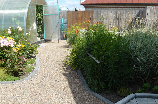 По-моему, ни одна клумба не будет красивой, если не соблюдать очевидное правило: в саду не должно быть открытой земли. Мы пришли к идеальному для себя варианту – гравийная отсыпка. По всем правилам на подложку был засыпан мелкий камень, и теперь среди цветов у нас чисто и уютно.