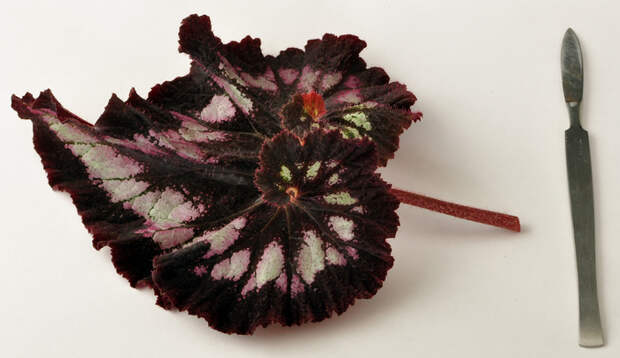 Все нужно смотреть индивидуально подобрать материал. Итак далее вы все поймете по фото. Лист нужно разрезать с толстыми жилками, как показано на рисунке. Чтобы у каждой будущей детки был свой хвостик, жилка. Каждый фрагмент вы садите углубляя где-то на 2 см в субстрат, Субстрат поливаем до того как посадили отросток, ставим в тепличку. Теплички я никогда не проветриваю, конденсат не убираю. Посадила и забыла - очень удобно. После того, как я отделила первую волну деток, я уже не ставлю фрагменты в тепличку. Дальше уже они живут и производят потомство на обычных полках, рядом с детками и взрослыми растениями. Без теплички вы конечно можете поэкспериментировать, но у вас думаю, будет большой отход. Все дело в том, что листья фиалок более насыщены влагой и могут жить самостоятельно, у бегоний влаги меньше и их силы надолго без теплички не хватает. Итак, вот несколько фото которые, вам помогут сделать любимый цветник еще более разнообразным и привлекательным.